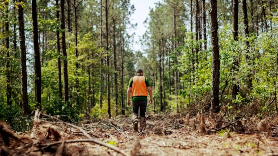 Un guardabosques de RoyOMartin se adentra en el bosque para comprobar las condiciones. (Foto cortesía de RoyOMartin)