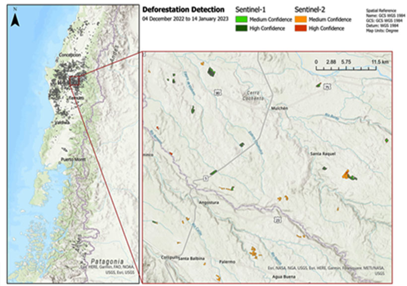Gracias a ENVI Inform, el cliente creó con éxito un servicio de monitoreo automatizado para identificar actividades de deforestación en todo Chile. Los beneficios de ENVI Inform consisten en que una vez que se identifica un área de interés, la información se puede actualizar casi en tiempo real y publicar en la plataforma del cliente, lo que permite a los analistas forestales comparar los resultados con otras fuentes de datos y tomar decisiones mejor informadas y más oportunas.