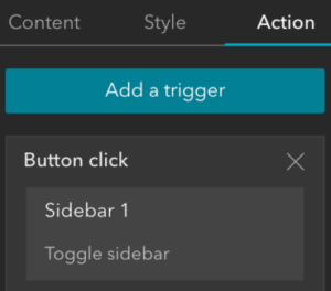 Antes de esta versión, los elementos de la página tales como los widgets de botón y texto no tenían acciones de mensaje para interactuar con otros widgets. A partir de esta versión, el widget de botón agrega el activador de clic en el botón, por lo que puede usar un widget de botón para abrir y cerrar un widget de barra lateral. Se admitirán más interacciones en versiones futuras.