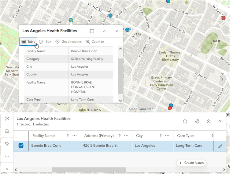 Ahora puede crear y editar entidades directamente desde la tabla de atributos de una capa de entidades en Map Viewer. Al trabajar con capas de tablas, también puede crear y editar registros directamente desde la tabla.