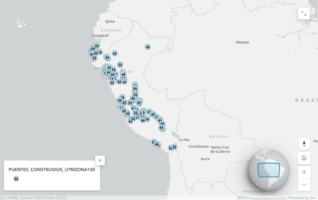 Análisis espacial de los puentes construidos en la red vial